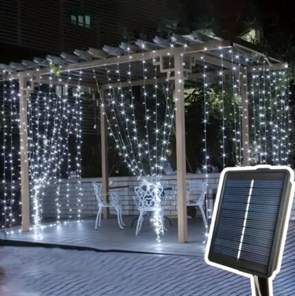 Χριστουγεννιάτικα Ηλιακά Λαμπάκια με Φωτοβολταϊκό Πάνελ 20m 200L Ψυχρό Χρώμα – Christmas solar LED lights White Color