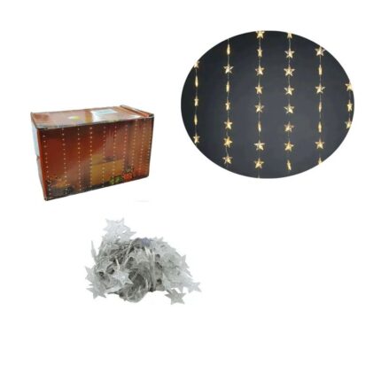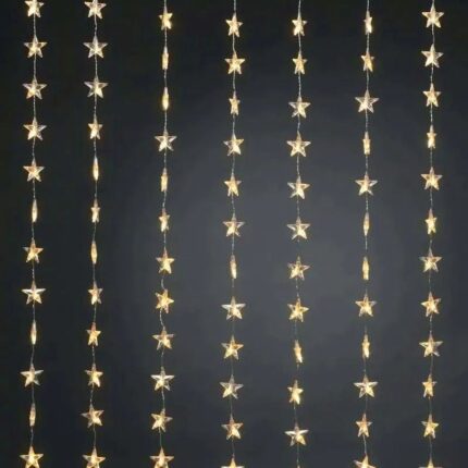 Χριστουγεννιάτικα Λαμπάκια Κουρτίνα Με Αστεράκια LED Θερμό Χρώμα με Διαφανές Καλώδιο 3m x 1m 80Led- Christmas lights