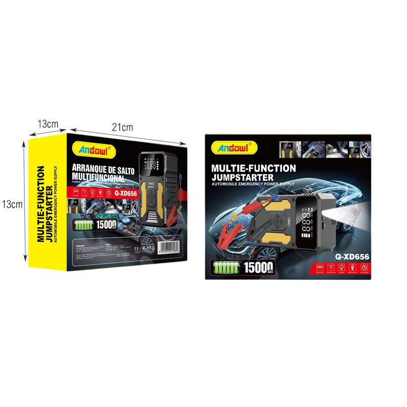 Το πολυλειτουργικό Jump Starter αυτοκινήτου Andowl Q-XD656 είναι η ιδανική λύση για κάθε οδηγό που θέλει να είναι πάντα προετοιμασμένος. Με ισχύ 1500A, μπορεί να εκκινήσει εύκολα το όχημά σας όταν η μπαταρία έχει αδειάσει. Διαθέτει επιπλέον λειτουργίες power bank για φόρτιση συσκευών, καθώς και φακό LED για χρήση σε συνθήκες χαμηλού φωτισμού.