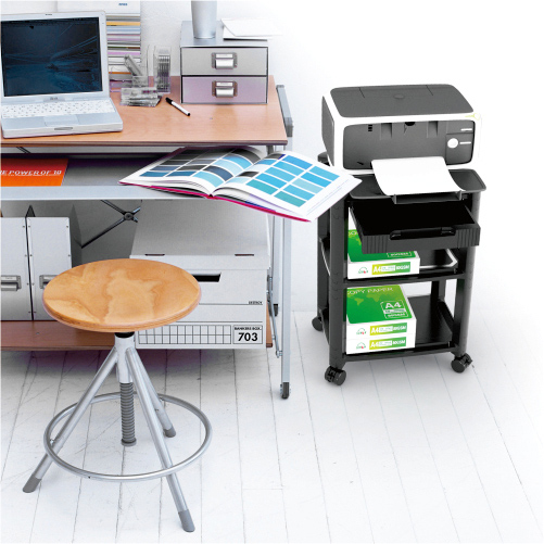Ραφιέρα δαπέδου της Brateck με 3 ράφια και συρτάρι, ιδανική για την τοποθέτηση περιφερειακών συσκευών PC όπως εκτυπωτές και άλλων ειδών γραφείου και αξεσουάρ.