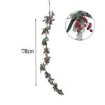 Εντυπωσιακή χριστουγεννιάτικη γιρλάντα με κουκουνάρια, κόκκινες μπάλες και πράσινα φύλλα, ιδανική για να στολίσει το τζάκι, τα κάγκελα ή το τραπέζι σας. Ο φυσικός της σχεδιασμός με λεπτομέρειες από “παγωμένα” κλαδιά προσθέτει χειμωνιάτικη ατμόσφαιρα και κομψότητα σε κάθε χώρο.