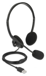DELOCK headphones με μικρόφωνο 27178, stereo, USB, volume control, μαύρα