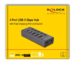 DELOCK USB hub 64248 με διακόπτες, 5x θυρών, 5Gbps, USB/USB-C σύνδεση, γκρι