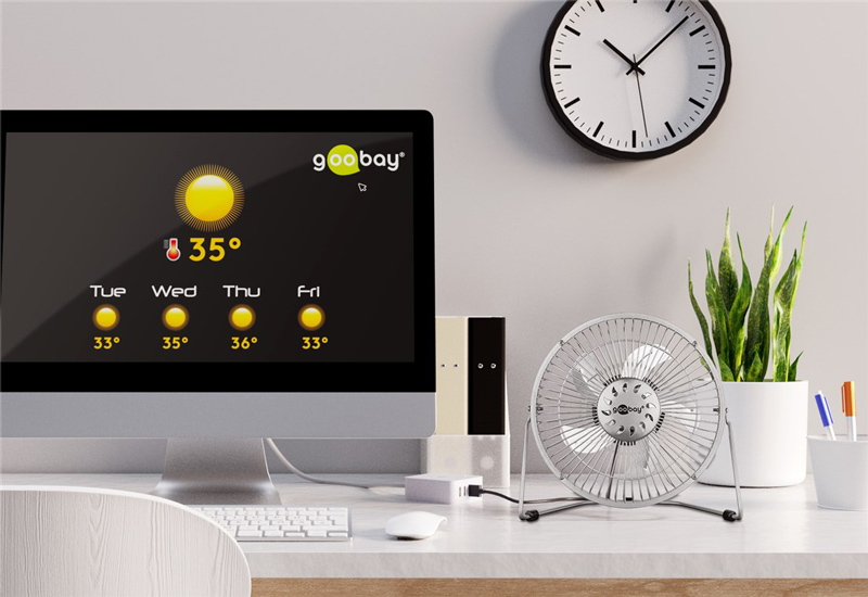 GOOBAY επιτραπέζιος ανεμιστήρας 62062, 8", USB, ασημί