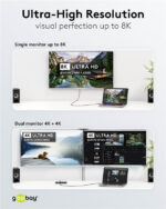 Το καλώδιο υποστηρίζει υψηλή ανάλυση 8K στα 60Hz και 4K στα 120Hz σε μια οθόνη, και 4K στα 60Hz όταν το σήμα μοιράζεται μεταξύ δύο οθονών μέσω ενός docking station.