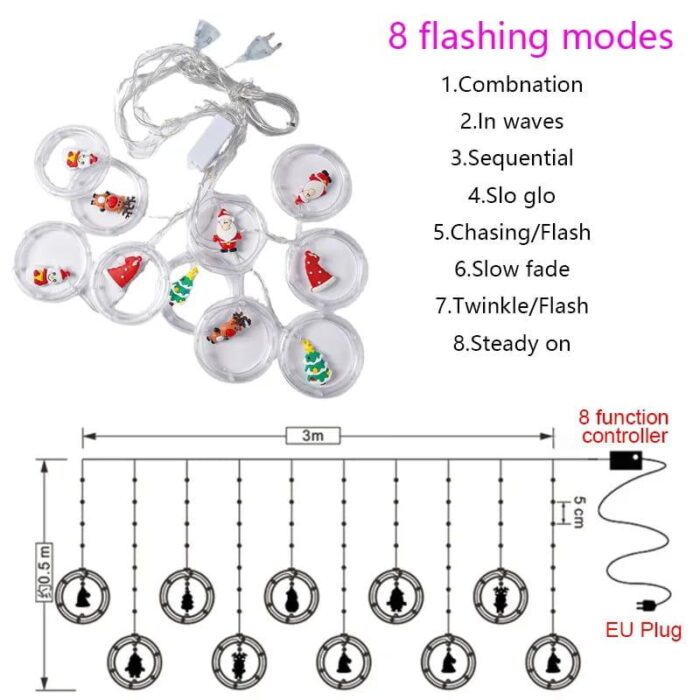 Χριστουγεννιάτικα φωτάκια κουρτίνα με φιγούρες ψυχρό φως 3m 10L – Christmas deco lights curtain