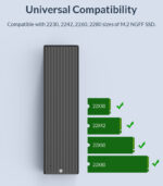 Θήκη για M.2 SSD με interface B key, η οποία μπορεί να συνδεθεί μέσω θύρας USB στον υπολογιστή, την τηλεόραση ή το κινητό σας (μέσω OTG). Είναι συμβατή με 4 μεγέθη M.2: 2230, 2242, 2260 και 2280.