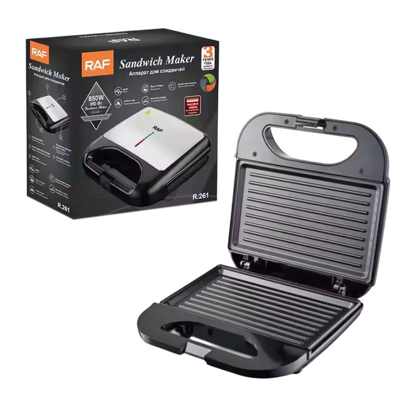 Η τοστιέρα RAF R.261 συνδυάζει ισχύ 850W με αντικολλητικές πλάκες για να ετοιμάζετε γρήγορα και εύκολα τοστ, σνακ και μικρά γεύματα. Ο εργονομικός σχεδιασμός και η διπλής όψης θέρμανση εξασφαλίζουν ομοιόμορφο ψήσιμο, ενώ η αντικολλητική επίστρωση επιτρέπει εύκολο καθάρισμα.
