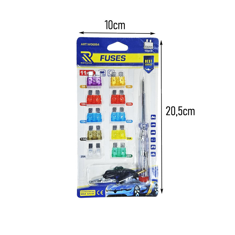 Εξασφαλίστε την προστασία του ηλεκτρικού συστήματος του αυτοκινήτου σας με το πρακτικό σετ ασφαλειών RCHANG ART:W06864. Αυτό το ολοκληρωμένο κιτ περιλαμβάνει 10 ασφάλειες αυτοκινήτου διαφόρων αμπεράζ, καλύπτοντας ένα ευρύ φάσμα αναγκών αντικατάστασης για τις περισσότερες εφαρμογές οχημάτων. Οι ασφάλειες είναι απαραίτητες για την προστασία των ηλεκτρικών κυκλωμάτων από υπερφόρτωση και βραχυκύκλωμα, αποτρέποντας ζημιές σε ακριβό εξοπλισμό.