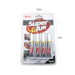 Ισχυρή κόλλα στιγμής RILL Super Glue σε πρακτική συσκευασία με 4 σωληνάρια των 3g. Κατάλληλη για γρήγορη και ανθεκτική συγκόλληση σε διάφορες επιφάνειες όπως μέταλλο, γυαλί, πλαστικό, καουτσούκ, κεραμικό και ξύλο. Ιδανική για επισκευές στο σπίτι, χειροτεχνίες και κατασκευές.