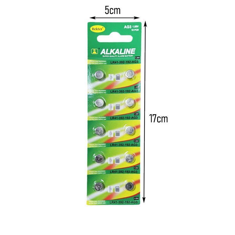 Σετ αλκαλικών μπαταριών LR41 1.5V, κατάλληλες για μικροσυσκευές όπως ρολόγια, θερμόμετρα, παιχνίδια, λέιζερ και υπολογιστές τσέπης. Οι μπαταρίες αυτές προσφέρουν σταθερή παροχή ενέργειας και μεγάλη διάρκεια ζωής, εξασφαλίζοντας την αξιόπιστη λειτουργία των συσκευών σας.