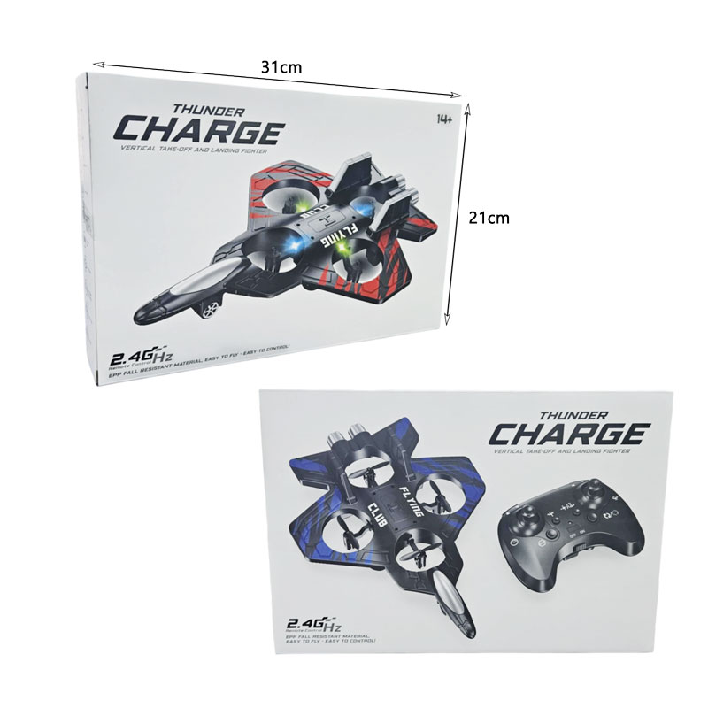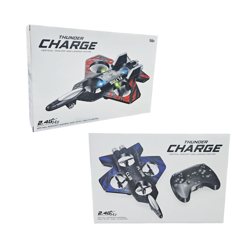 Ανακαλύψτε το τηλεκατευθυνόμενο αεροσκάφος Thunder Charge, ιδανικό για παιδιά και ενήλικες που αγαπούν τις πτήσεις και την τεχνολογία. Διαθέτει σύστημα κάθετης απογείωσης και προσγείωσης (VTOL), τεχνολογία 2.4GHz για σταθερό έλεγχο, και προηγμένα χαρακτηριστικά για απλή και ασφαλή χρήση.