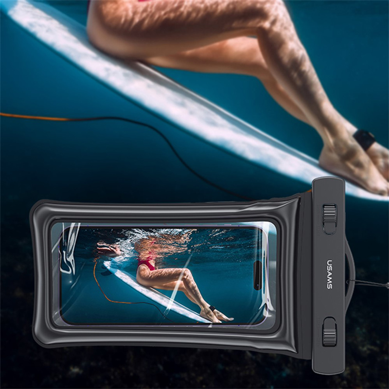 Αδιάβροχη θήκη της Usams, συμβατή με smartphones έως 7". Ασφαλίζει πλήρως τη συσκευή σας από την εισροή νερού, χάρη στην εξαιρετική στεγανότητα επιπέδου IPX8.