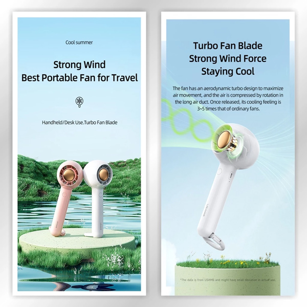Μίνι φορητός ανεμιστήρας της Usams με 2 επίπεδα ταχύτητας του αέρα, που σας επιτρέπουν την προσαρμογή της ροής της ταχύτητας του αέρα ανάλογα με τις ανάγκες σας
