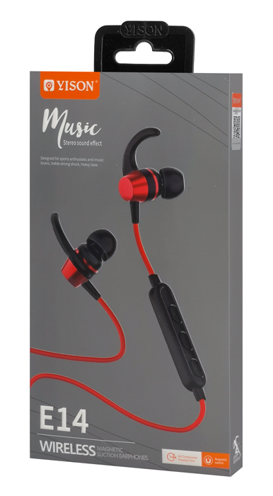 YISON earphones E14 με μαγνήτη, Bluetooth, 10mm, 65mAh, κόκκινα